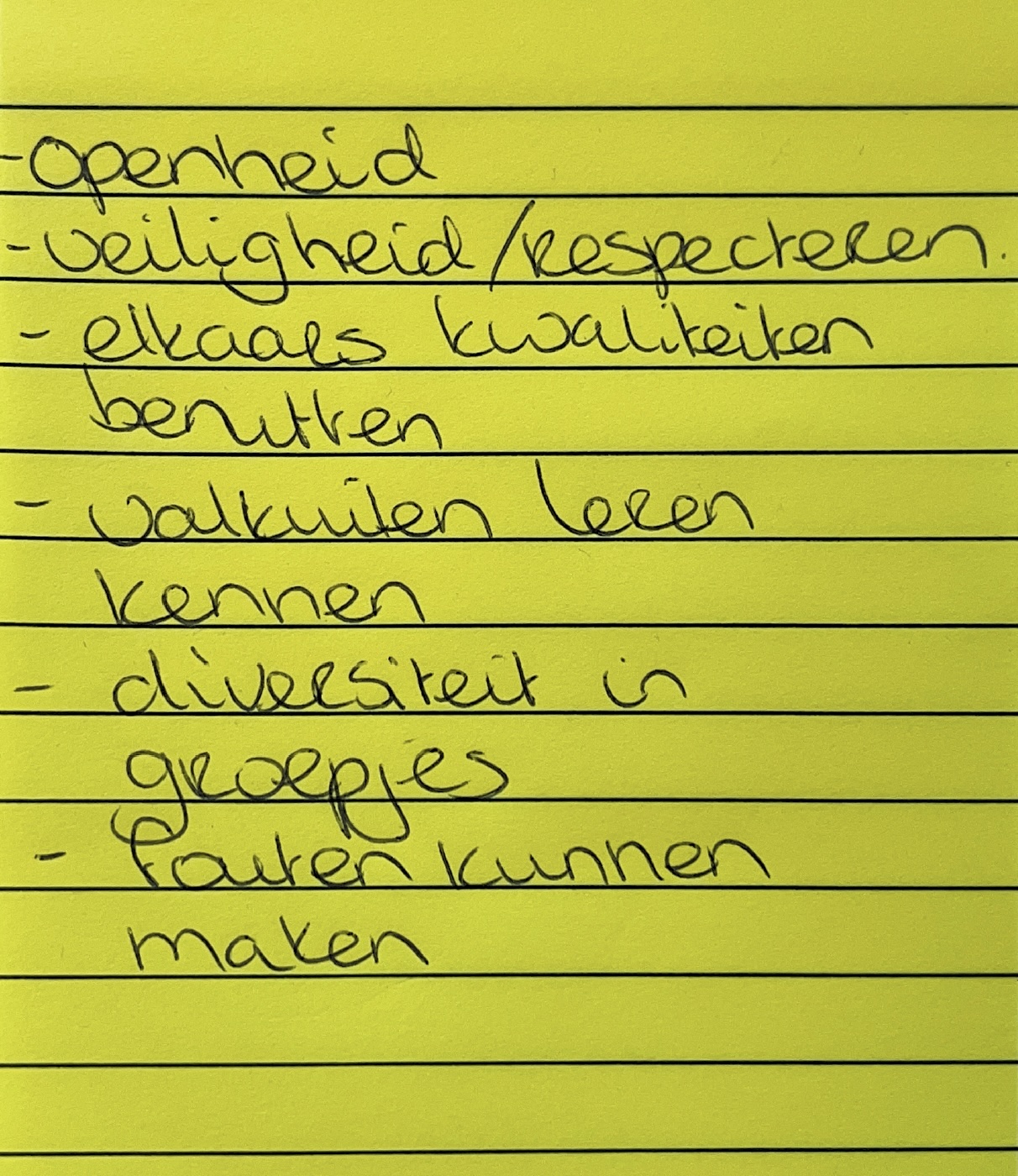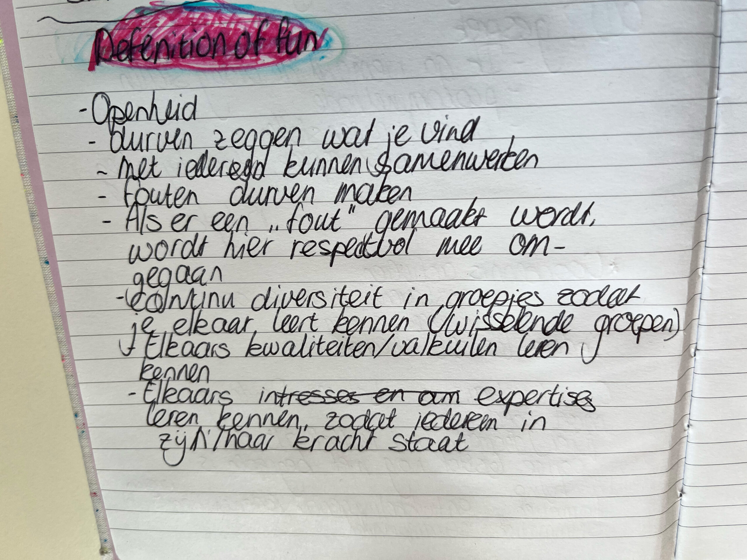 “Definition of fun” = gezamenlijke normen, waarden en afspraken om een veilige, inclusieve leeromgeving te creëren – geen keiharde regels, maar gewenste omgangsvormen.