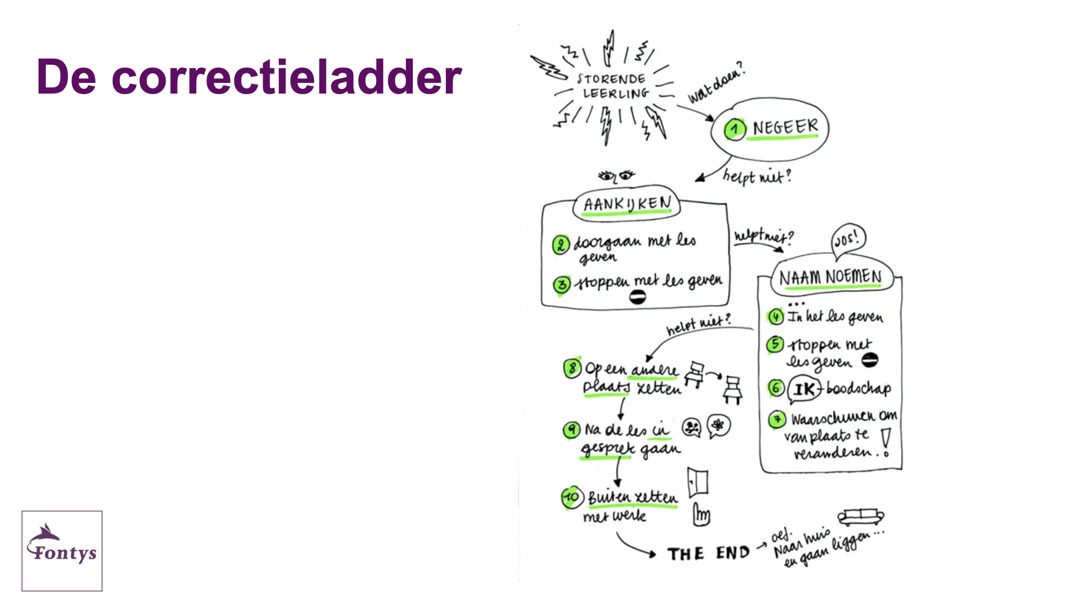 – Hanteer een correctieladder: pauzeer, naam noemen, verzoek om stil te zijn, laatste waarschuwing, eventueel na afloop gesprek.
