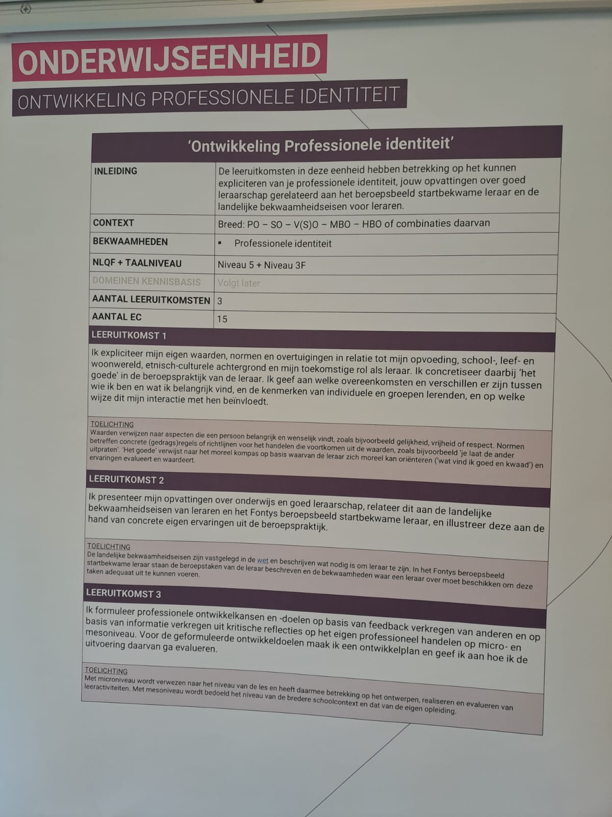 Verder gaan we door praktische mededelingen over Canvas en een vooruitblik op klassenmanagement. Daarna wordt toegelicht hoe deelnemers een leertraject ontwerpen (reisplan, leeruitkomsten, pitch) voor hun portfolio. In groep ontwerpen ze een 30-minuten mini-les rond één breinprincipe, met AI-ondersteuning voor een vlogscript. Afgesloten wordt met een nabespreking over groepsdynamiek, leercomfort en procesgericht denken.