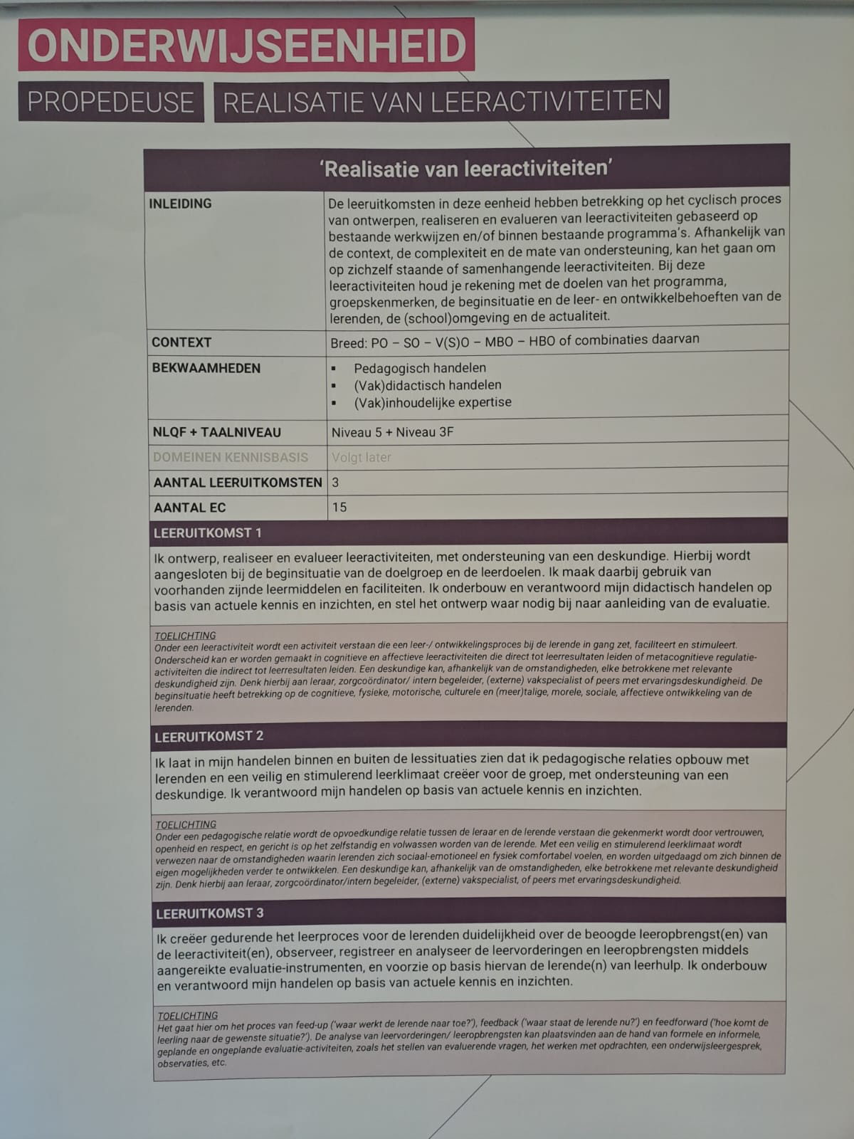 – Studenten werken met persoonlijk leerplan: leerdoelen en planning van opdrachten.