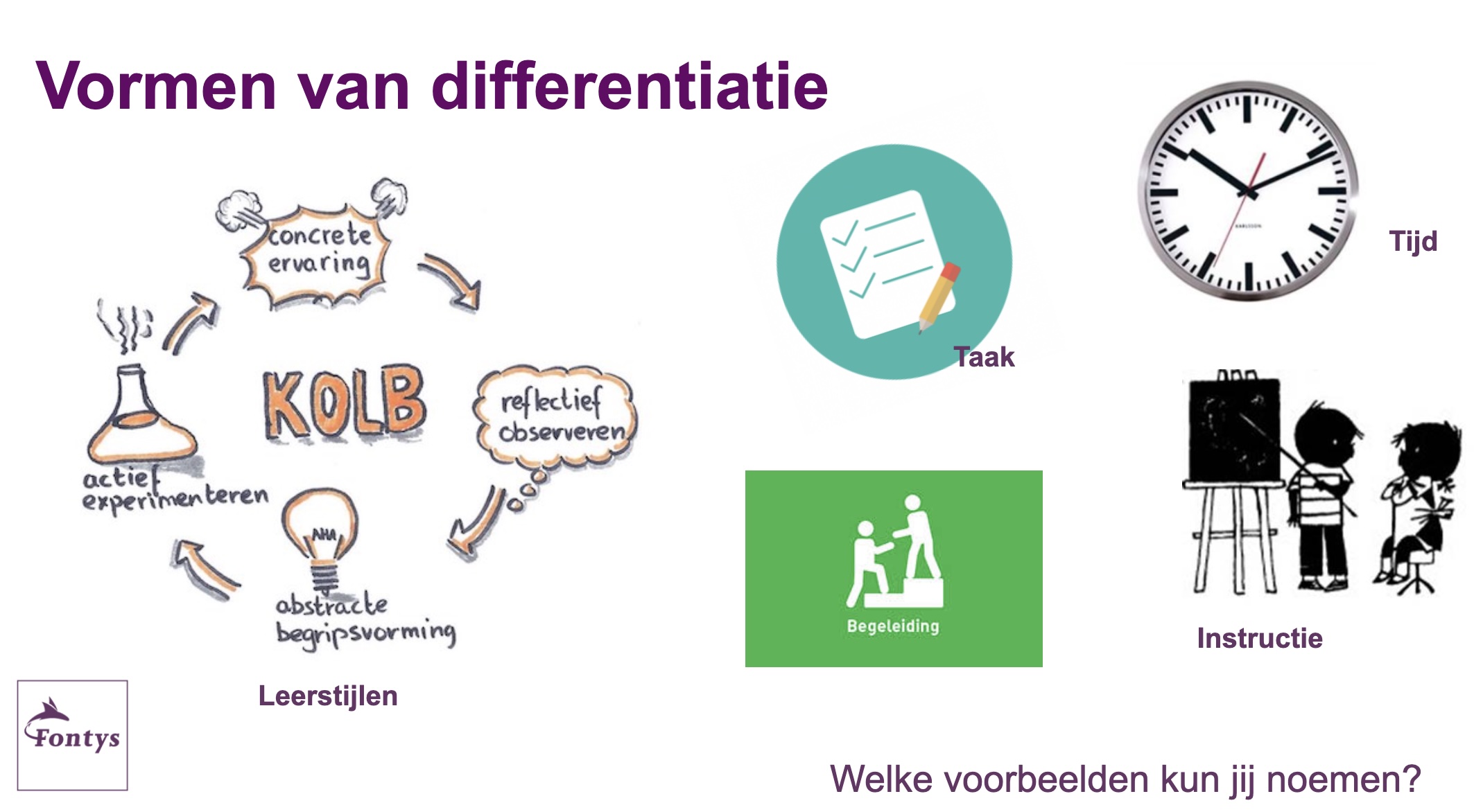 – Convergent: groepen indelen op basis van nulmeting of proeftoetsen en elk groepje aangepaste opdrachten geven